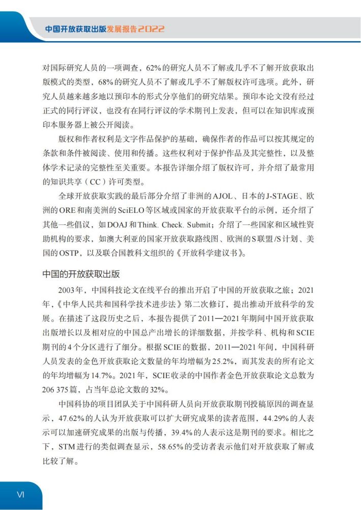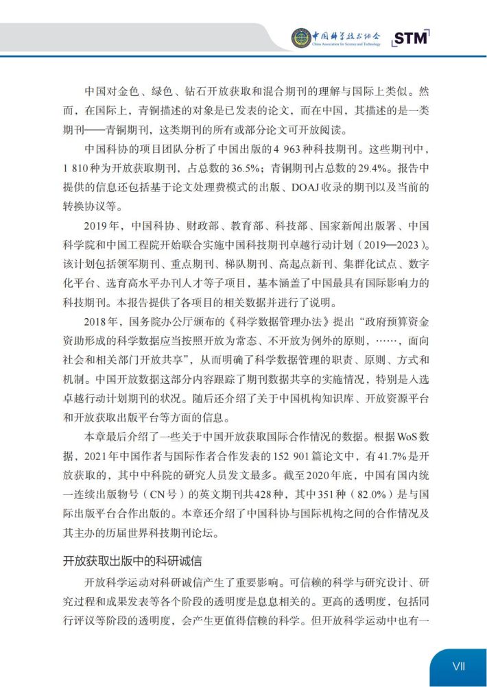 中国是科研产出大国,也是全球开放科学的重要参与力量。近年来,中国的科技界、出版界已经深度融入全球开放科学实践,在开放获取论文、开放共享数据、开放科学设施建设和开放出版国际合作等方面积极探索。2011-2021 年,中国科研人员每年发表的国际论文中,开放获取论文的数量从2.5万余篇增长到23.8万余篇,占比从15.8%增至37.8%,年均增长率为25.2%。中国科协作为中国200多家科技社团的联合组织,愿意与全球科技共同体携手并进,构建多元协同机制,搭建科技期刊交流平台,开展学术出版传播合作,推动开放获取出版转型,努力增进开放科学跨界协作和多元实践。