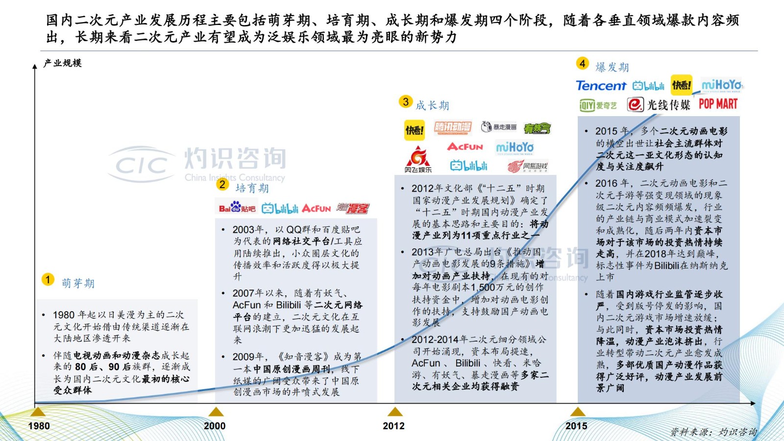 作为泛二次元用户的主要构成部分,国内Z时代群体普遍热衷于线上社交和分享、兴趣多元有个性、重视精神体验以及追求时尚,由于其消费理念新颖且对于二次元文化内容消费需求持续增长,随着更多的Z世代群体逐渐步入社会且具备更高的消费能力,国内二次元内容行业的货币化空间有望进一步拓展。