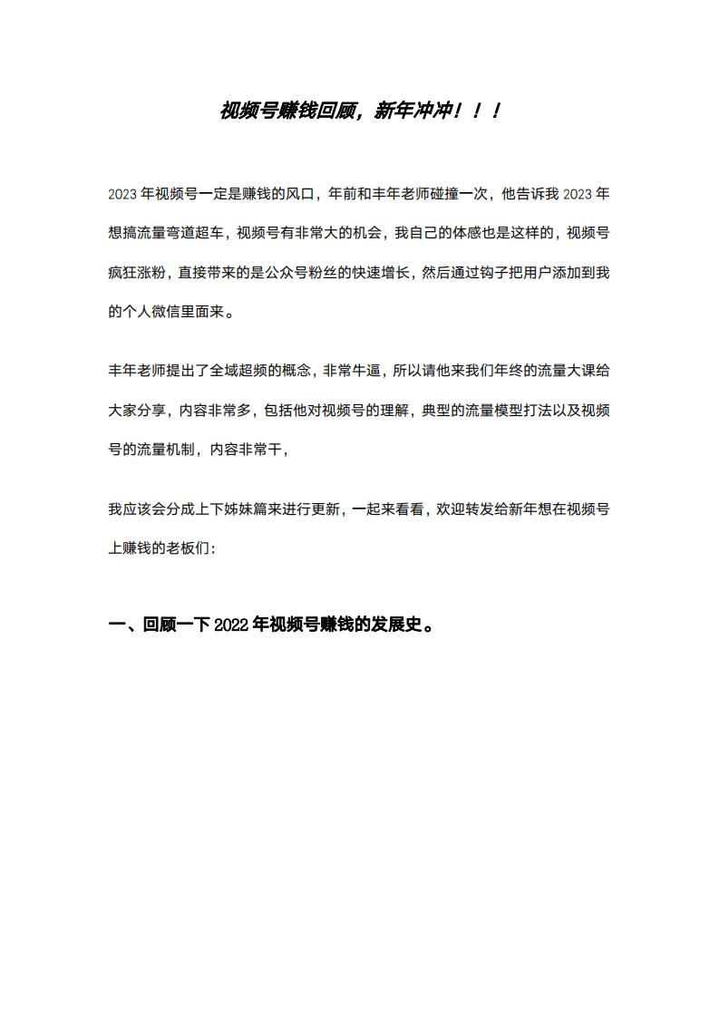 2022年,真的是视频号红利的一年,有团队赚到钱了,有个人赚到钱了,也有人跑通了公域+私域的玩法,但大多数玩法都属于内部机密期,很少有往外放的。