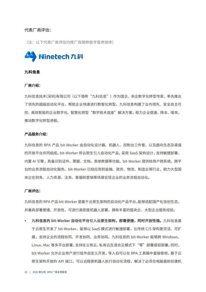 33页|2022RPA厂商全景报告