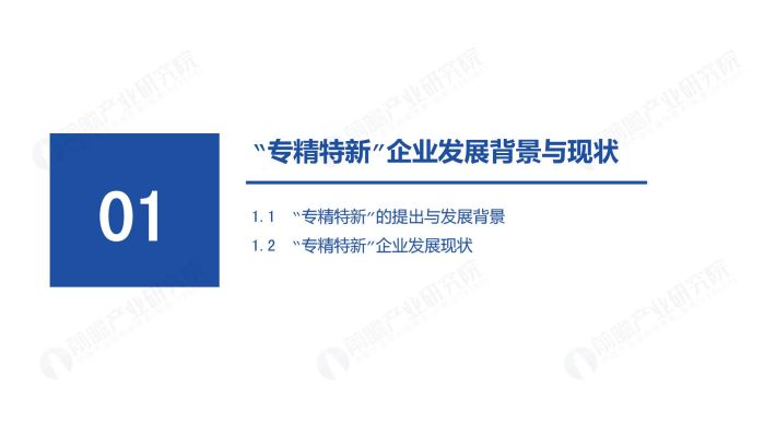"专精特新"企业是指具有"专业化、精细化、特色化、新颖化"特征的中小企业。"专精特新"的灵魂是创新,底蕴是科技实力,是中小企业高质量发展的方向。工信部指出我国将建立中小企业梯度培育体系,聚焦创新型中小企业、"专精特新"中小企业、专精特新"小巨人"企业,分层打造"专精特新"企业群体,并推动"小巨人"企业加快向单项冠军、领航企业发展。从"专精特新"企业群体层次来看,从上到下具体可进一步细分为国家级专精特新小巨人企业,省/市级专精特新小巨人企业,省/市级专精特新中小企业。其中,专精特新"小巨人"企业专注于细分市场、创新能力强、市场占有率高,是中小企业中的排头兵和领头雁。