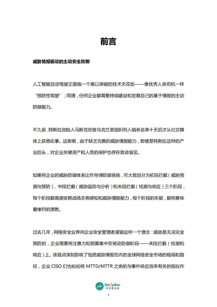 “预防性驾驶”;同理,任何企业都需要持续建设和发展自己的基于情报的主动防御能力。
