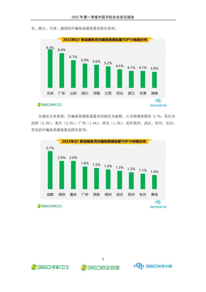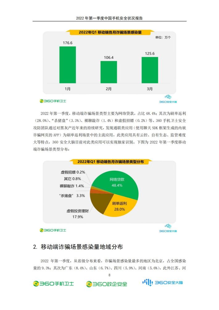 2022年第一季度360赔付保(原手机先赔)共接到11类手机诈骗举报,涉案总金额高达273.5万元,人均损失23375元。在所有诈骗类型中,虚假兼职占比最高达31.6%;其次是交友(20.5%)、虚假购物(9.4%)、金融理财(8.5%)、赌博博彩(7.7%)等。从涉案总金额来看,交友类诈骗总金额最高,达95.8万元,占比35.0%;其次是虚假兼职诈骗,涉案总金额74.6万元,占比27.3%;金融理财排第三,涉案总金额为52.1万元,占比19.0%。