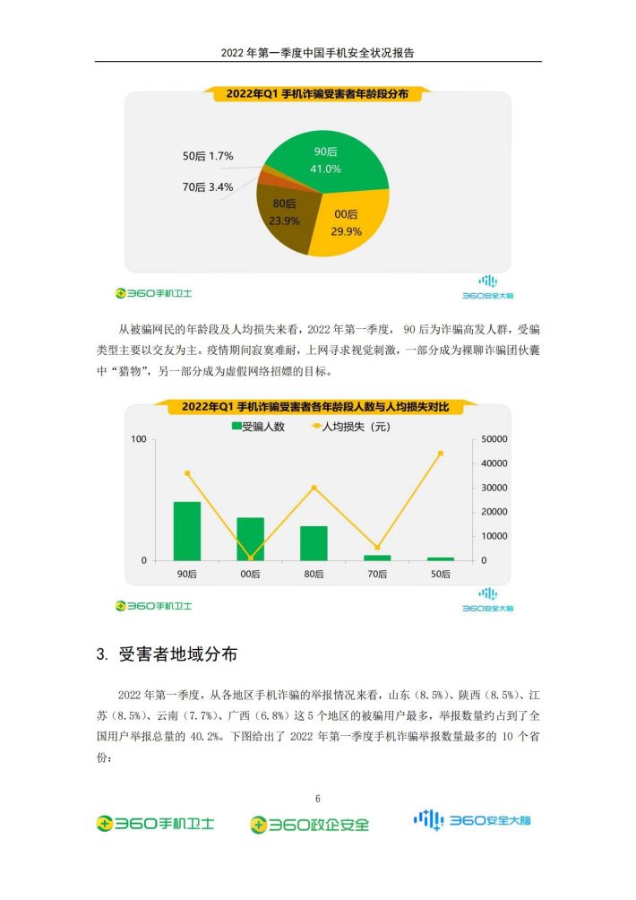 2022年第一季度,从举报用户的性别差异来看,男性受害者占64.1%,女性占35.9%,男性受害者占比高于女性。从人均损失来看,男性为21820元,女性为26152元,男性人均损失低于女性。