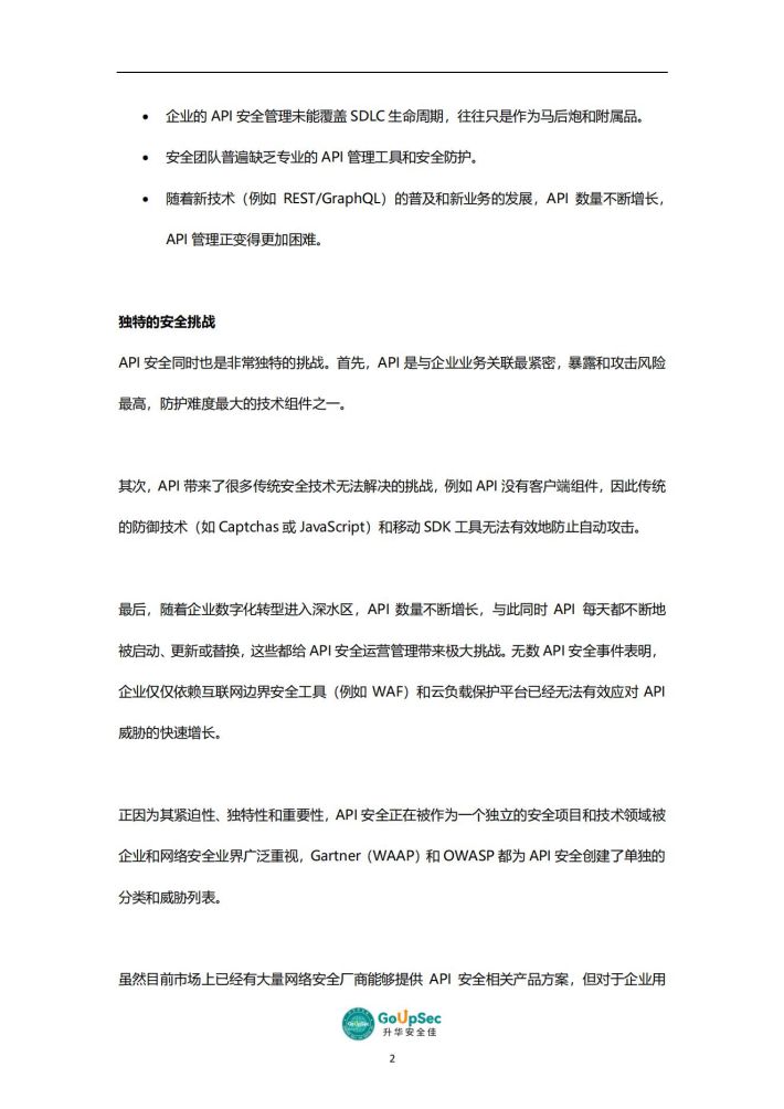 API安全问题正给企业带来巨大损失,除了数据泄露、品牌与合规风险外,API安全问题可导致新产品或服务的发布延期甚至取消,企业创新被遏制,数字化转型受挫;大规模数据泄露或业务中断甚至会对关键基础设施和数字经济造成严重威胁和损失。