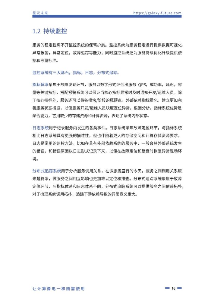 保障系统稳定运行∶ 满足业务运营指标要求, 从韧性和弹性两方面设计和运维系统,韧性主要指确保系统稳定,安全运行。弹性主要指系统能随业务负载实时适配支撑能力,以精准的伸缩及合理的成本满足业务需求。