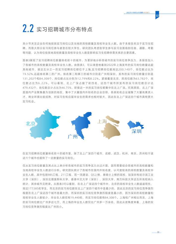 在此背景下,研究企业实习招聘的现状和发展趋势有较强的现实意义。对于大学生而言,充分了解实习招聘的发展动态,可以有针对性地提高专业知识和培养专业能力,以应对激烈的劳动力市场竞争;对于高校而言,依据企业需求发展趋势,可以适时对人才培养方案进行科学和系统性的调整;对于政府而言,各地政府可以因地制宜,依据当地产业优势出台对应扶持政策,有针对性地发展对应的实习市场。